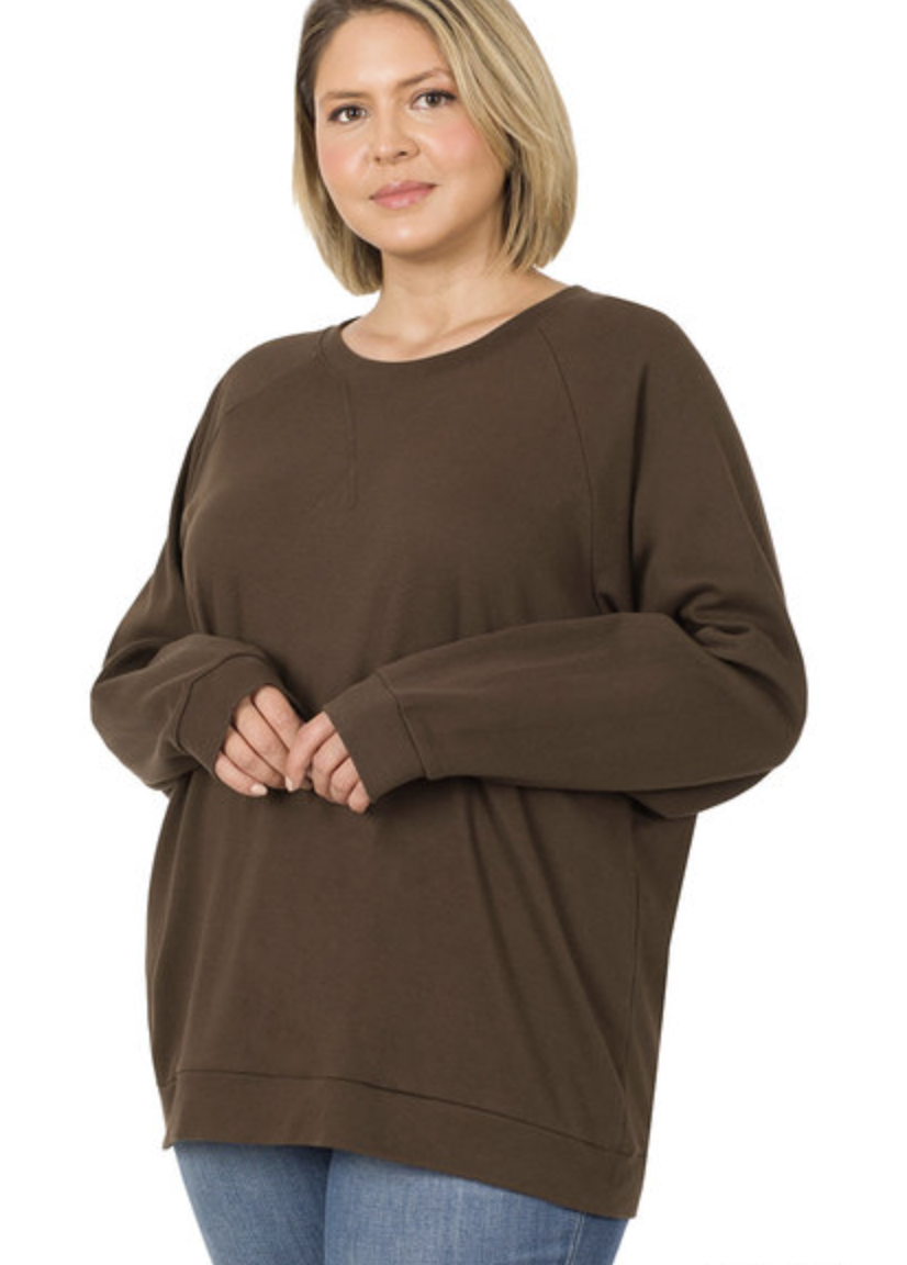 Plus Raglan Sleeve Round Neck Sweatshirt