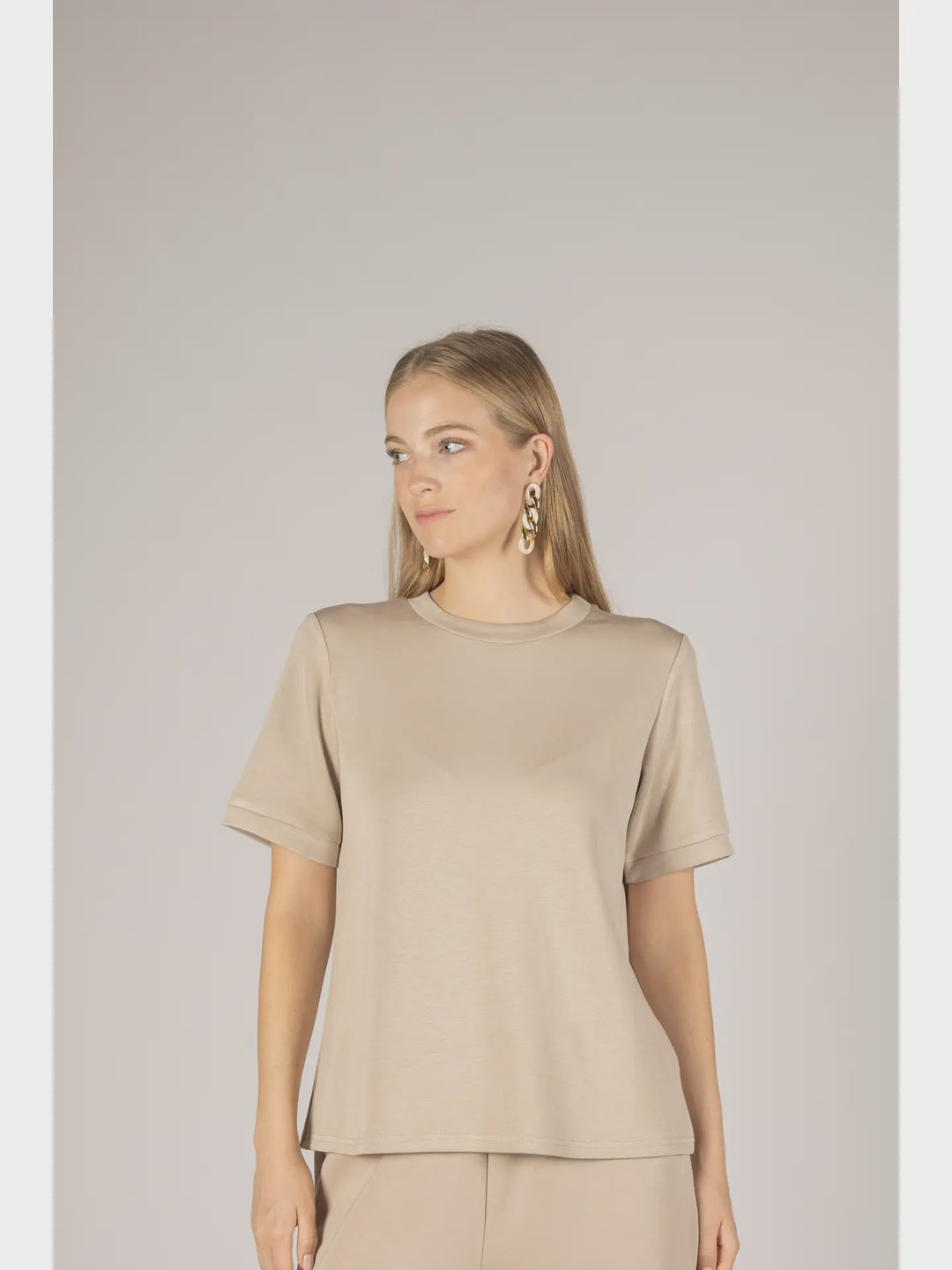 P. Cill Butter Modal Round Neck Short Sleeve Tee- Taupe