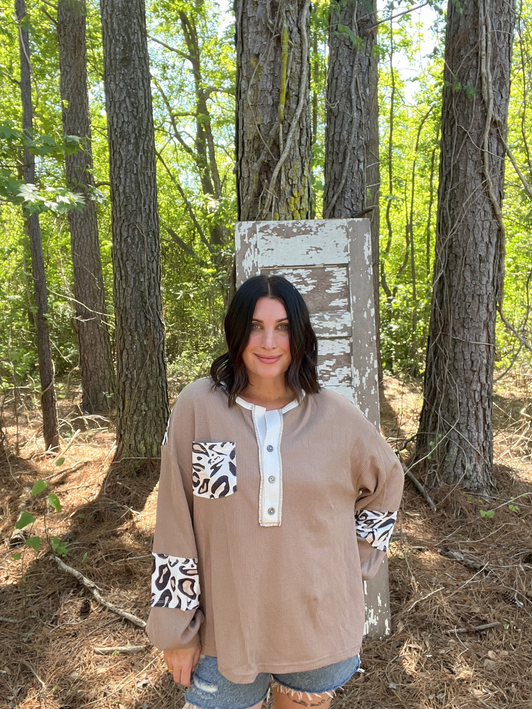 ONLINE EXCLUSIVE Waffle Knit Leopard Patch Henley