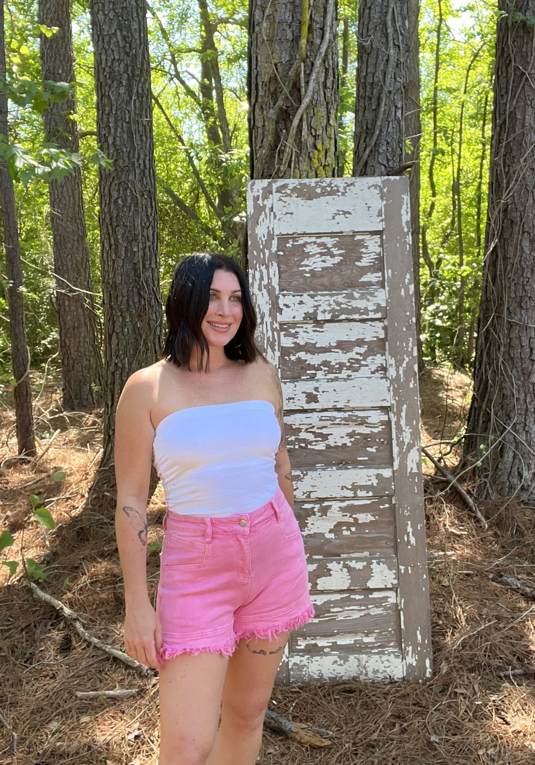 ONLINE EXCLUSIVE Pink Cutoff Denim Shorts