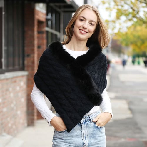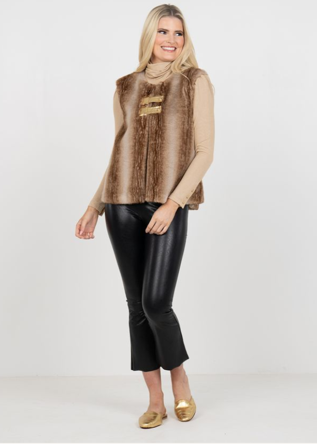 Joseph Ribkoff Mink Chevron Faux Fur Mock Neck Vest