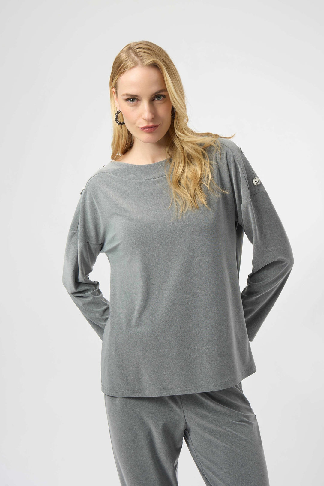 Joseph Ribkoff Mélange Silky Knit Straight Top- Grey Melange