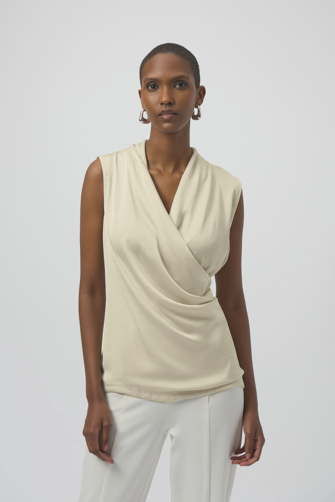 Joseph Ribkoff Satin & Silky Knit Sleeveless Wrap Top- Birch