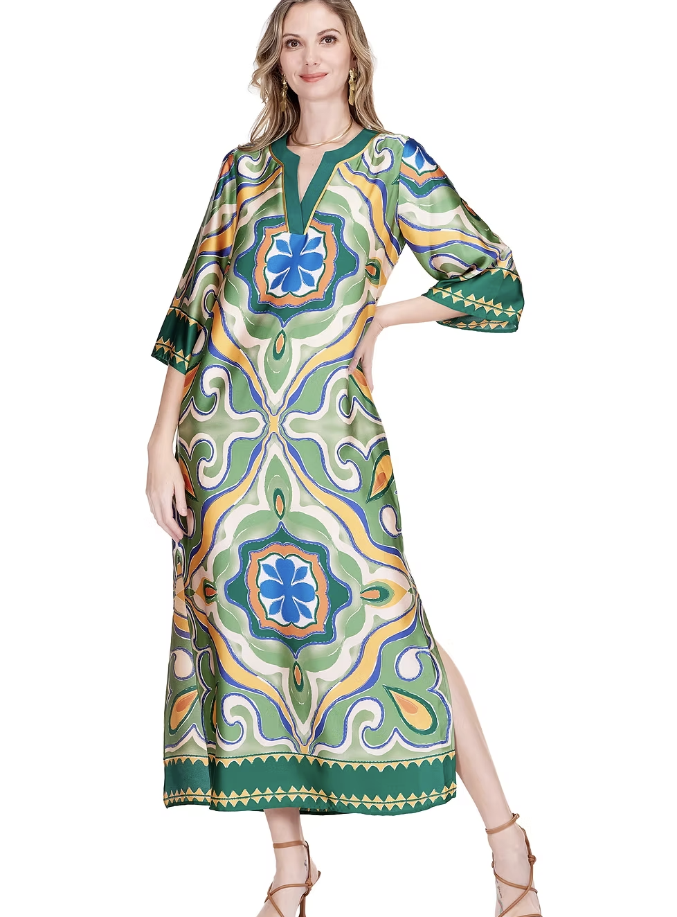 Jade Moroccan Tile Trimmed Maxi Dress
