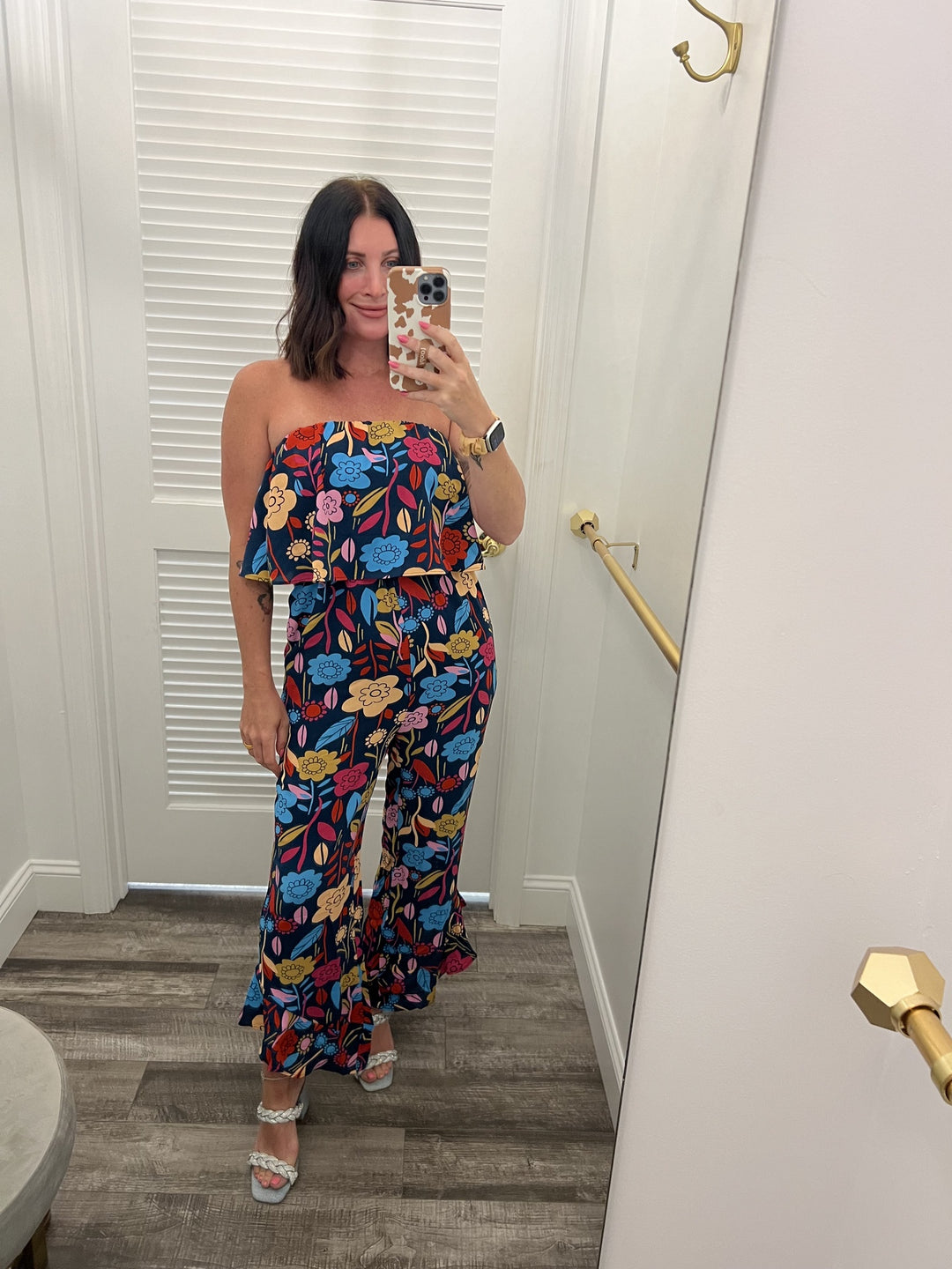 Vintage Floral Silky Strapless Romper