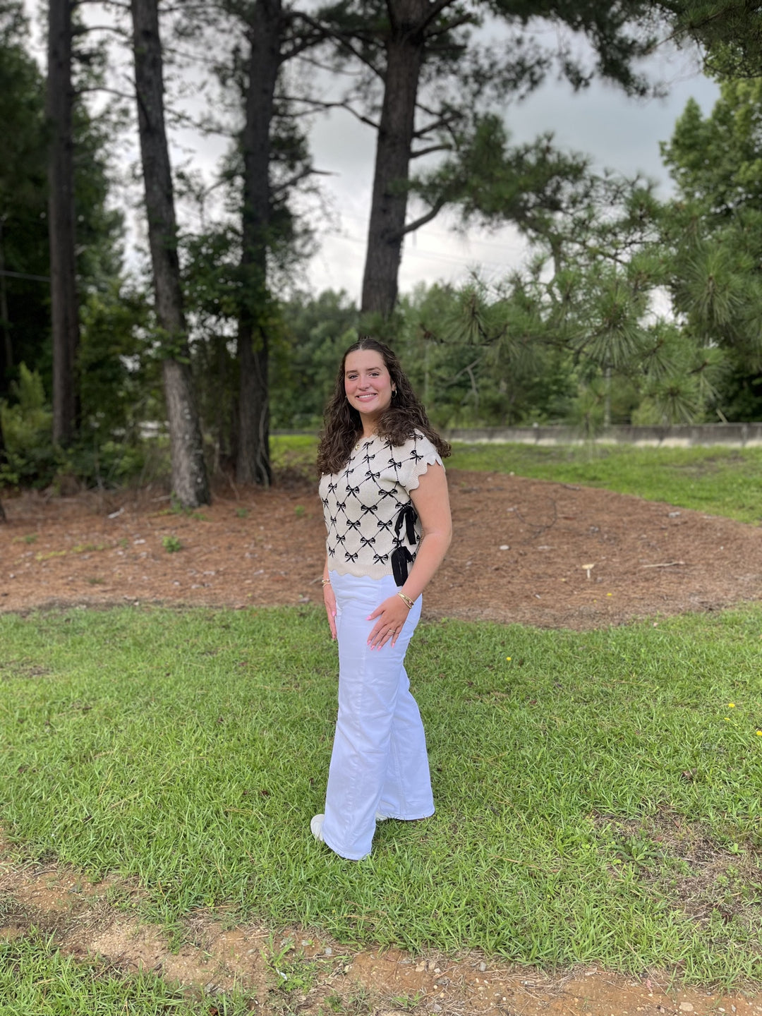 Blu Pepper Bow Pattern Short Sleeve Side Tie Knit Pullover- Khaki