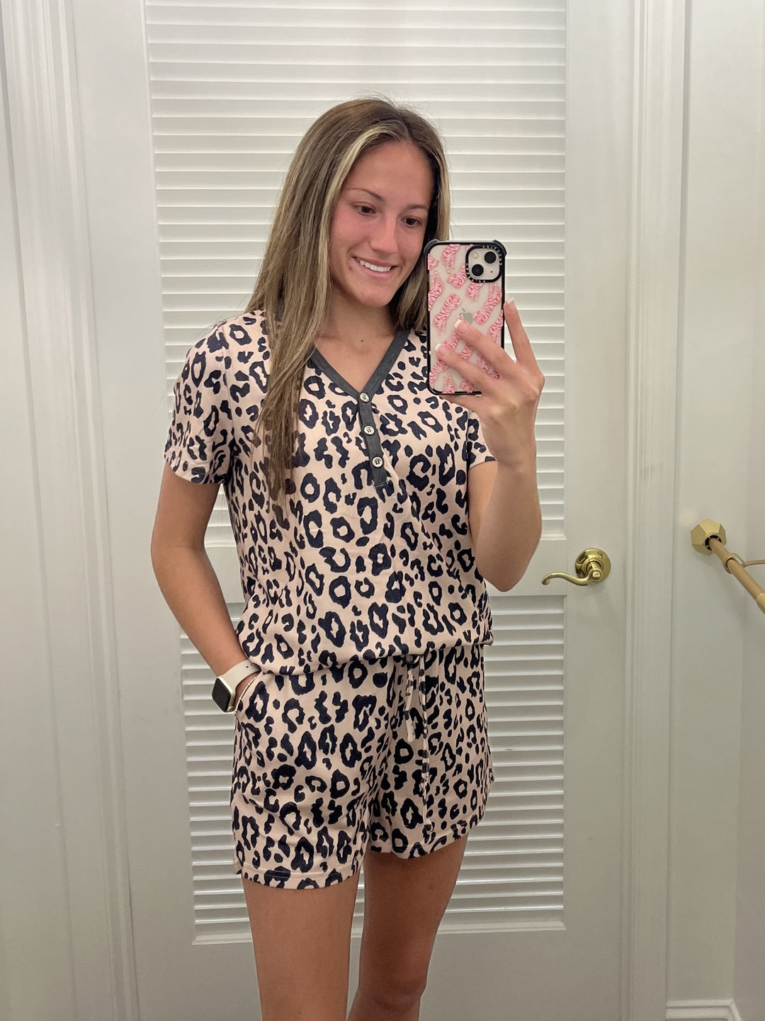 Leopard V-Neck Tee and Drawstring Shorts Set
