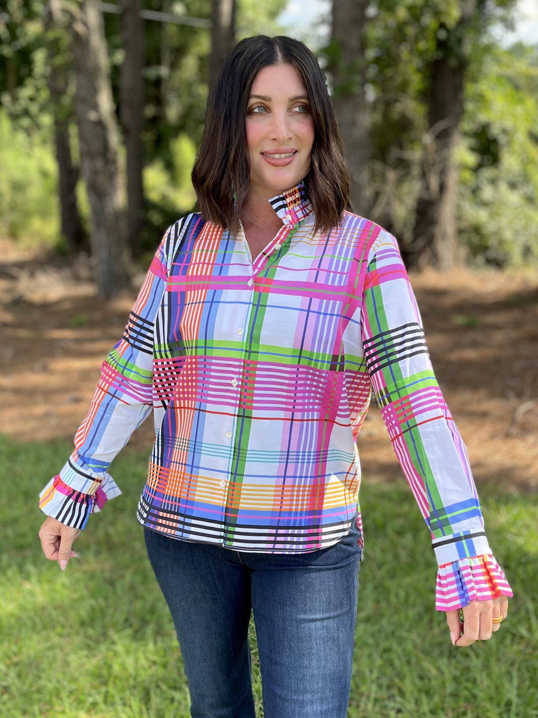 Vilagallo Nicola Multicolor Lines Button Down Blouse