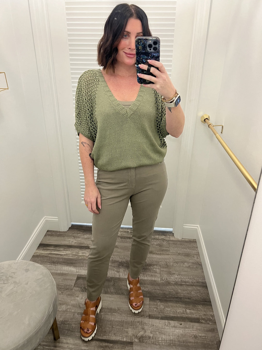 Marble Green Half Button Short Sleeve V-Neck Shirt