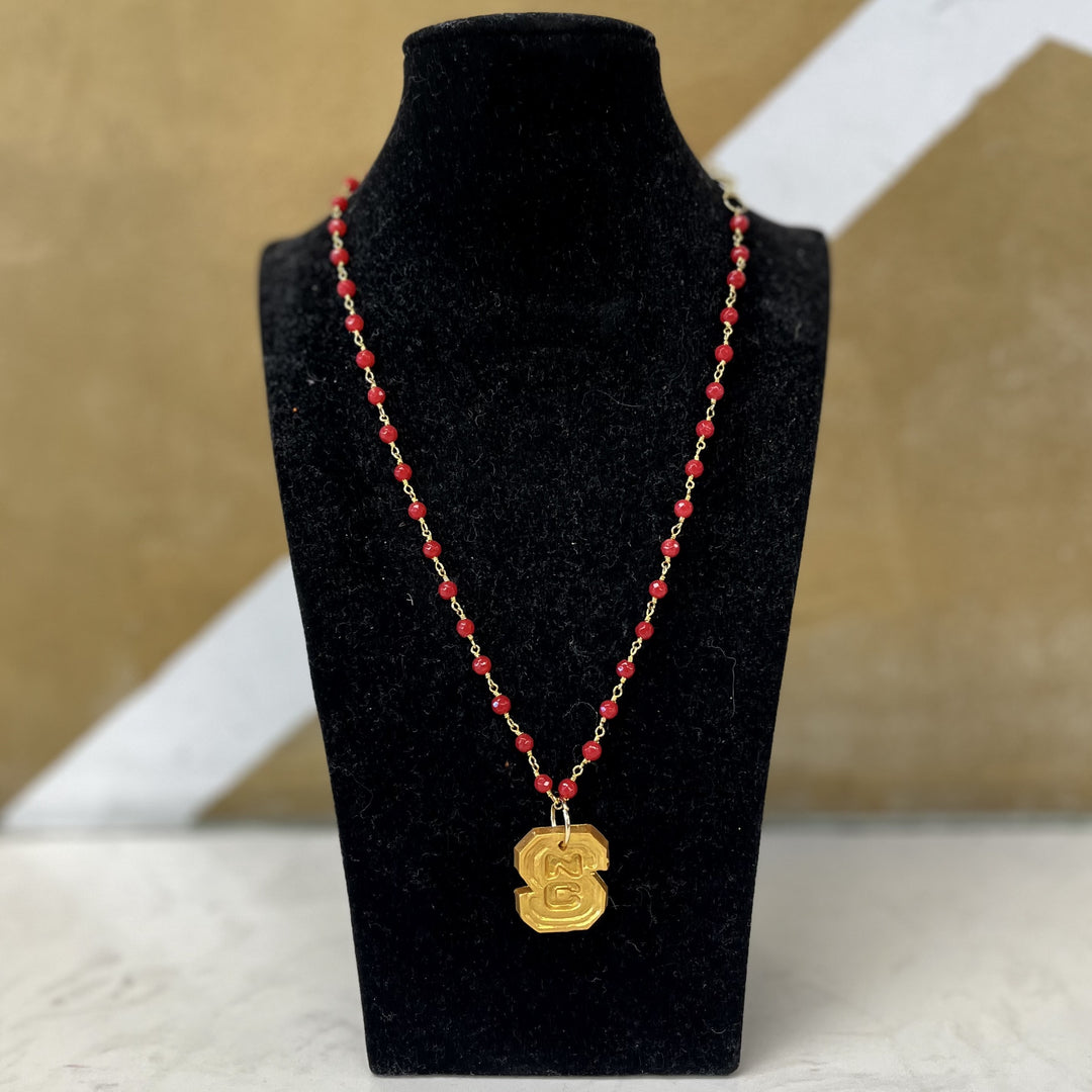 Hidden Truth Jewelry 18" Red Jade Chain with NC State Logo Necklace