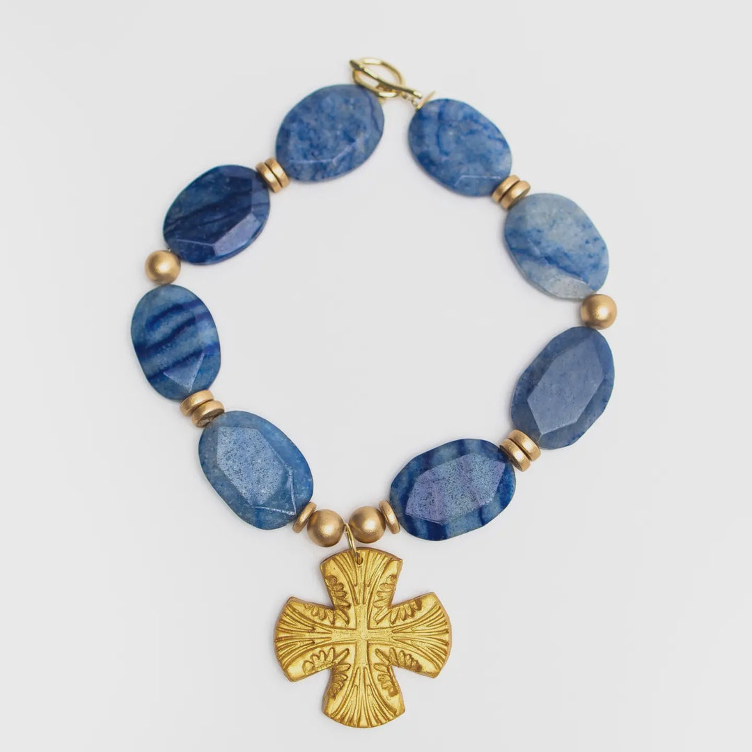 Hidden Truth Jewelry Blue Aventurine Nuggets with Martha Cross