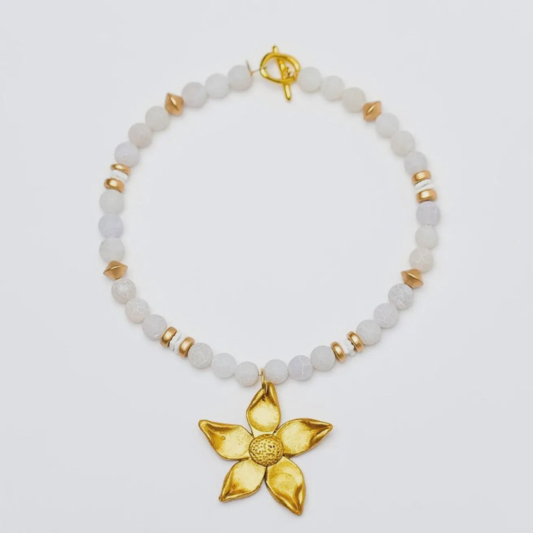 Hidden Truth Jewelry White Fire Agate with Stargazer Lily Necklace