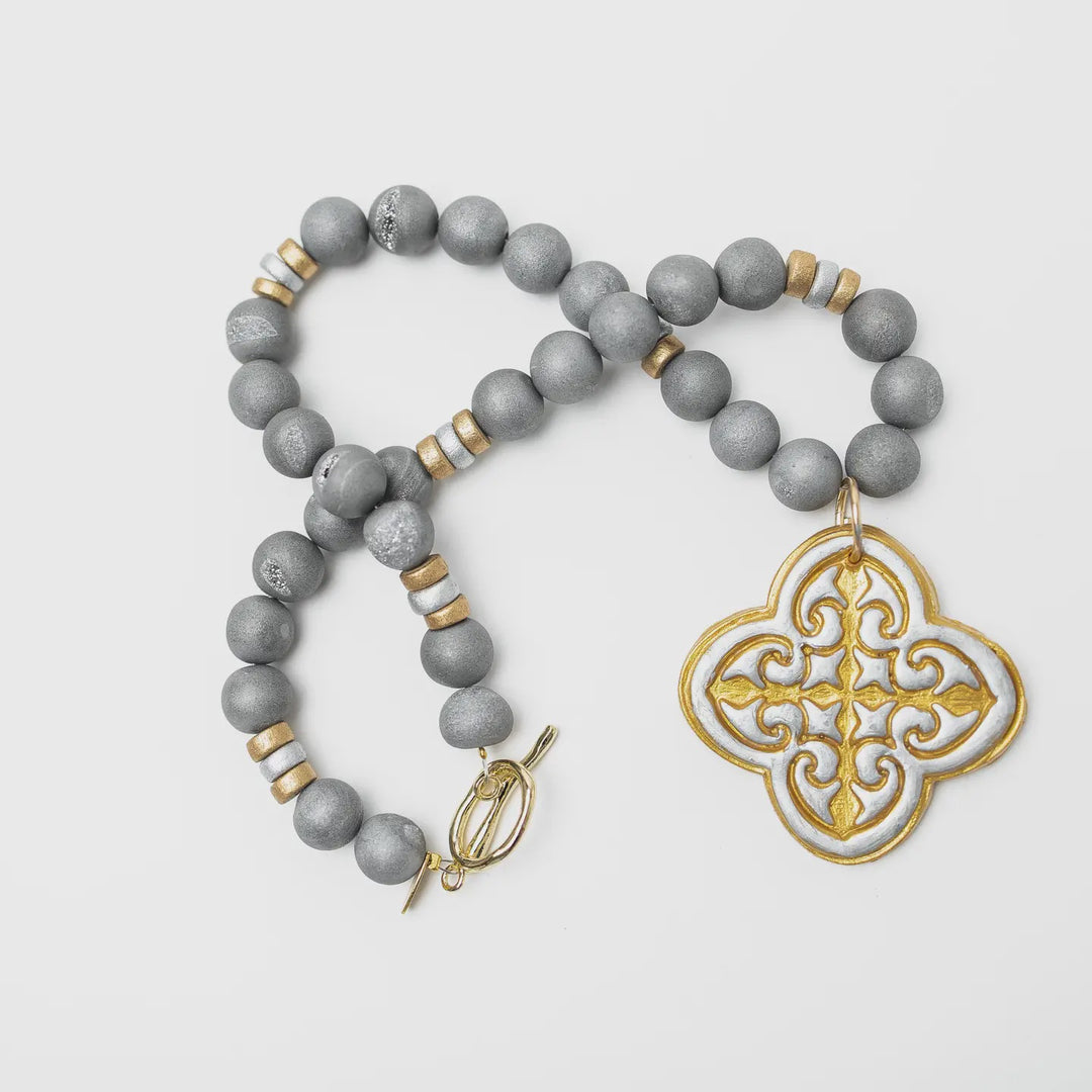 Hidden Truth Jewelry Silver Druzy with Tracy Cross Necklace
