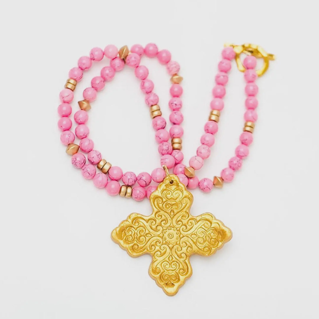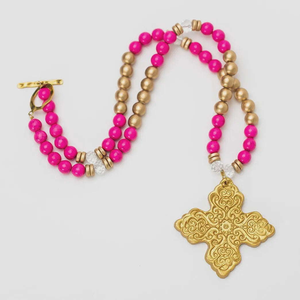 Hidden Truth Jewelry Hot Pink Jade with Lydia Cross Necklace