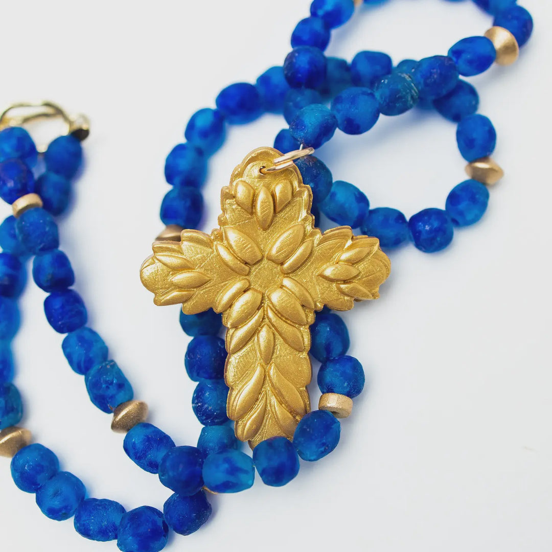 Hidden Truth Jewelry Blue African Glass with Acts Cross