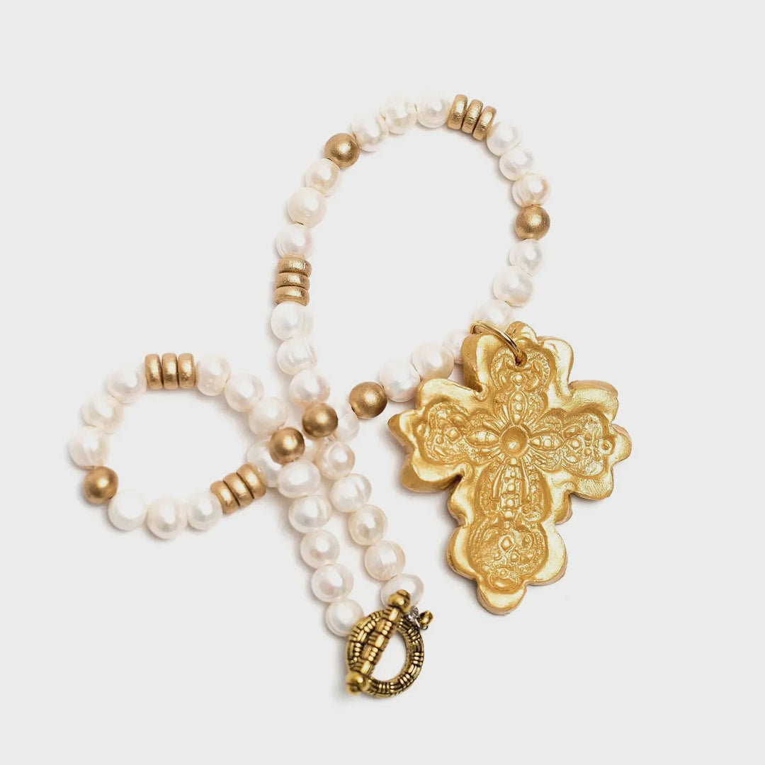 Hidden Truth Jewelry Pearls with the Elizabeth Cross Necklace
