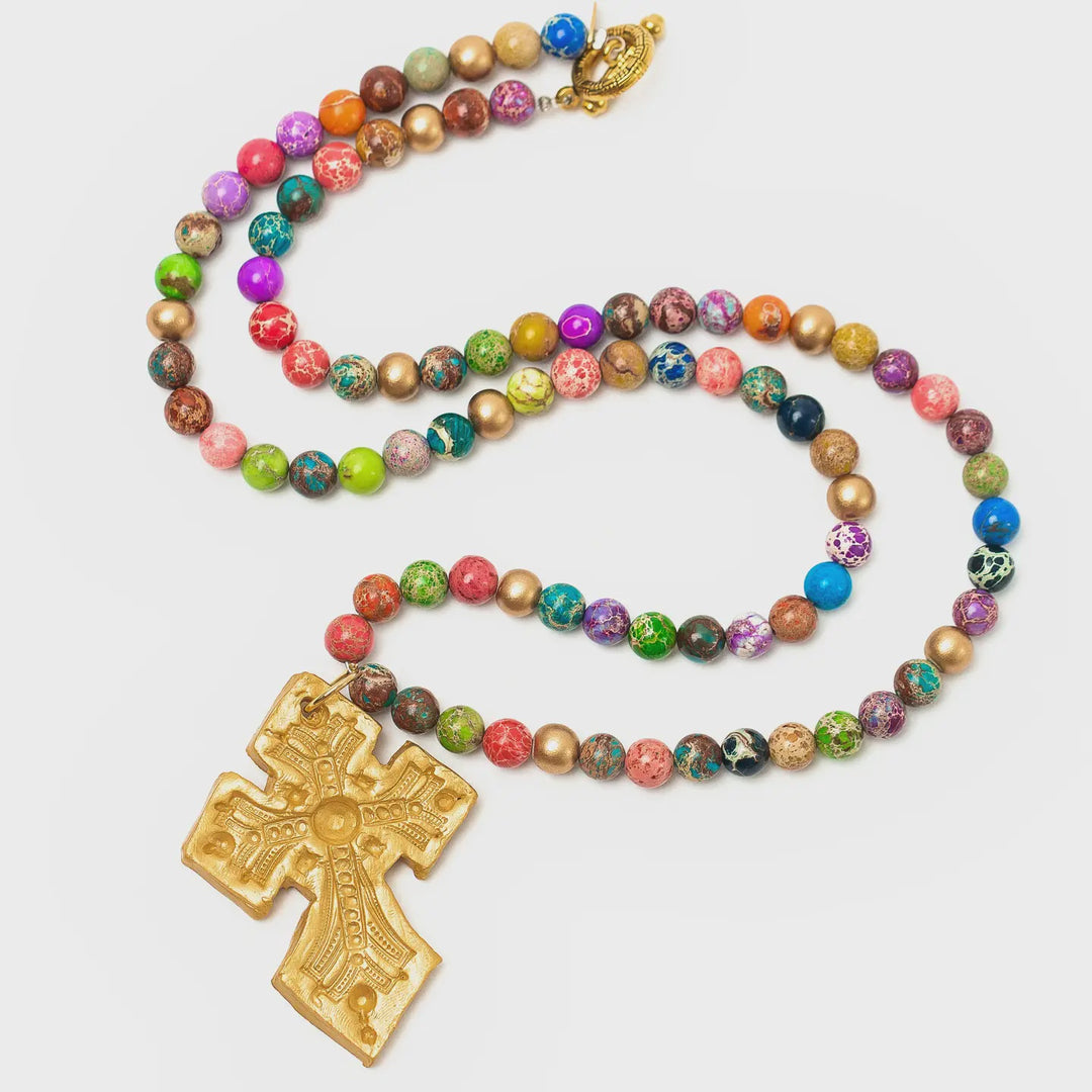 Hidden Truth Jewelry Multicolored Sea Jasper with Amy Cross Necklace