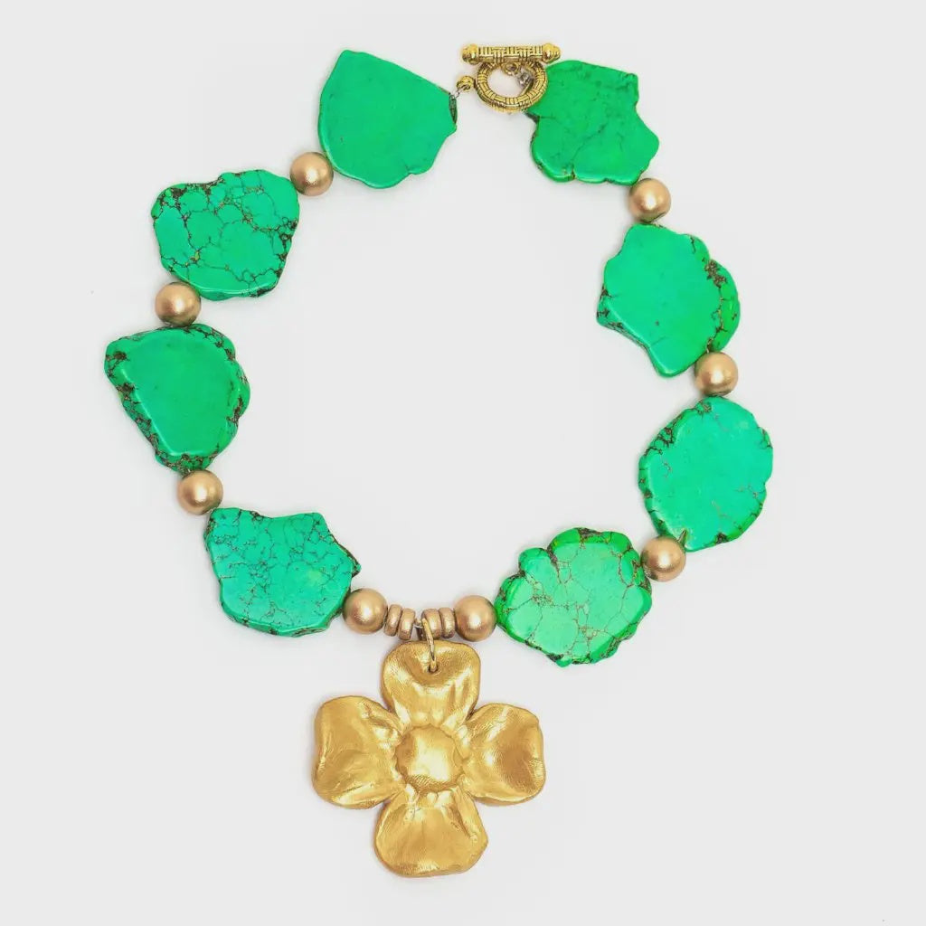 Hidden Truth Jewelry Green Jade Nuggets with Dogwood Blossom Necklace