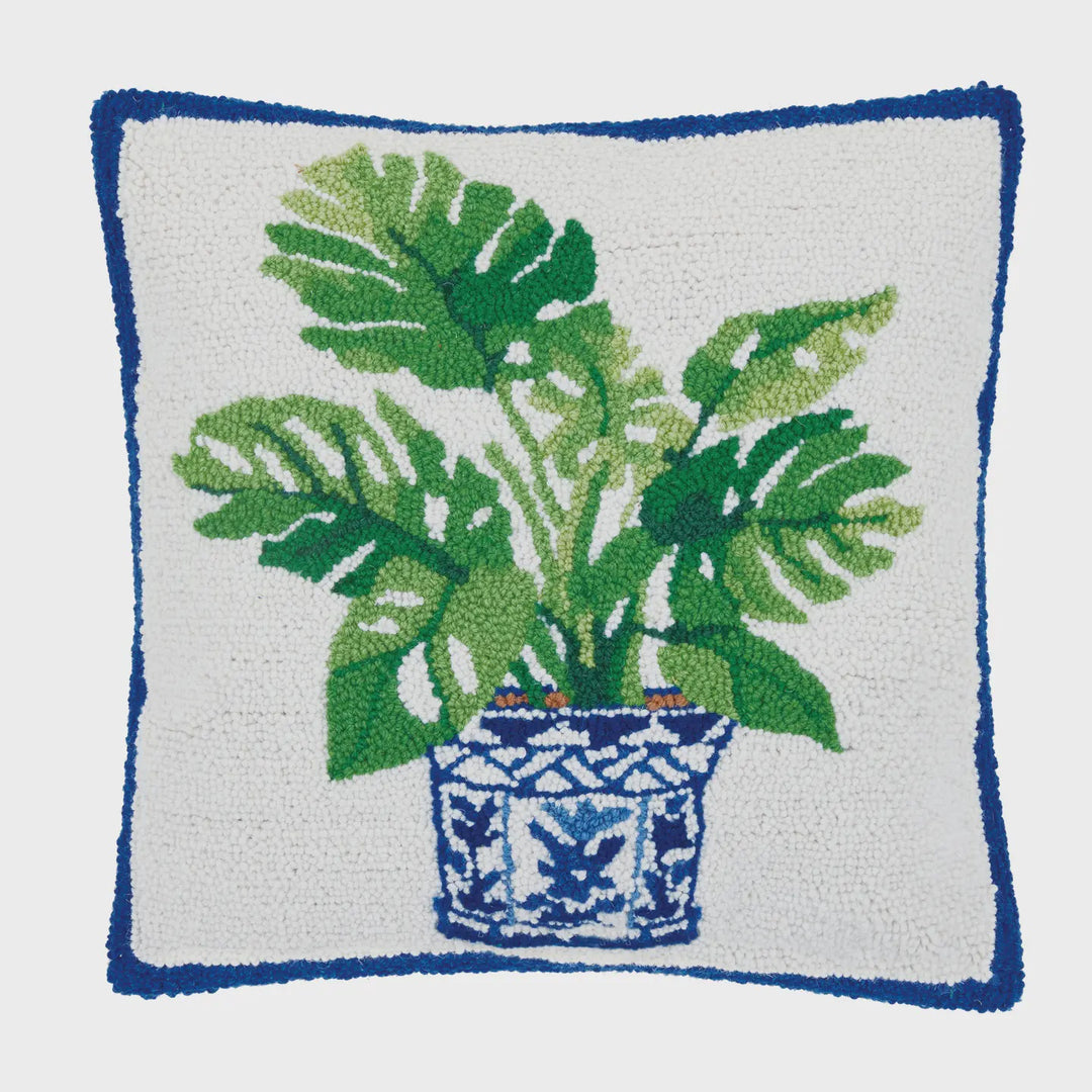 Peking Handicraft Blue Monstera Plant Hook Pillow