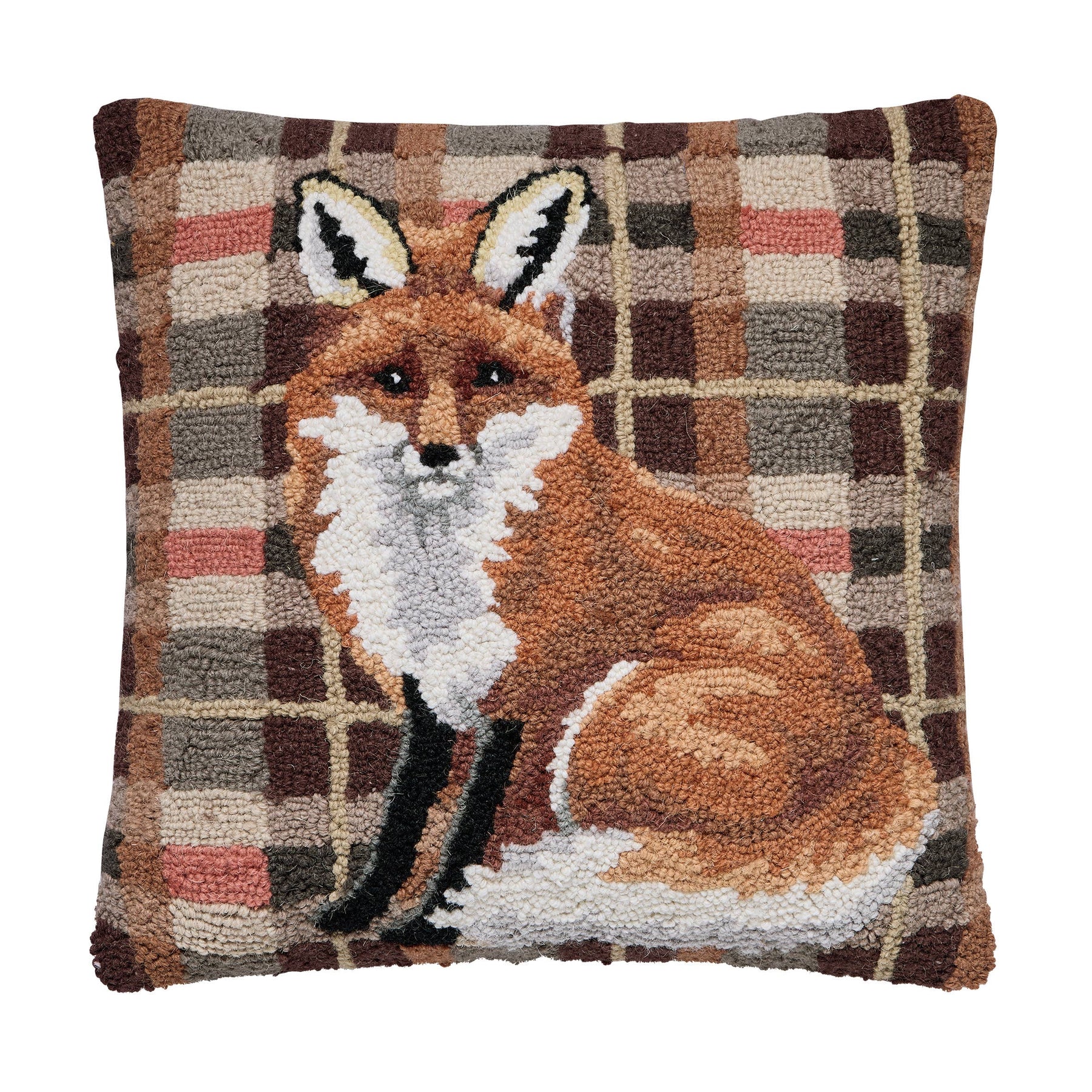 Peking Handicraft Fox Tartan Hook Pillow