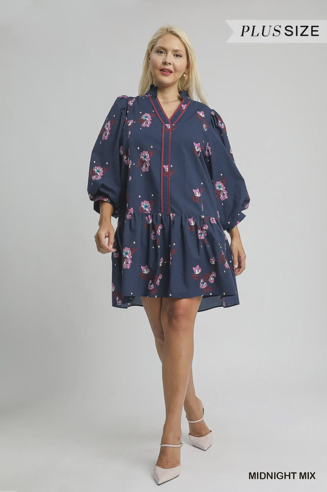 Umgee Floral Mini Dress with Puff Sleeves- Midnight Mix