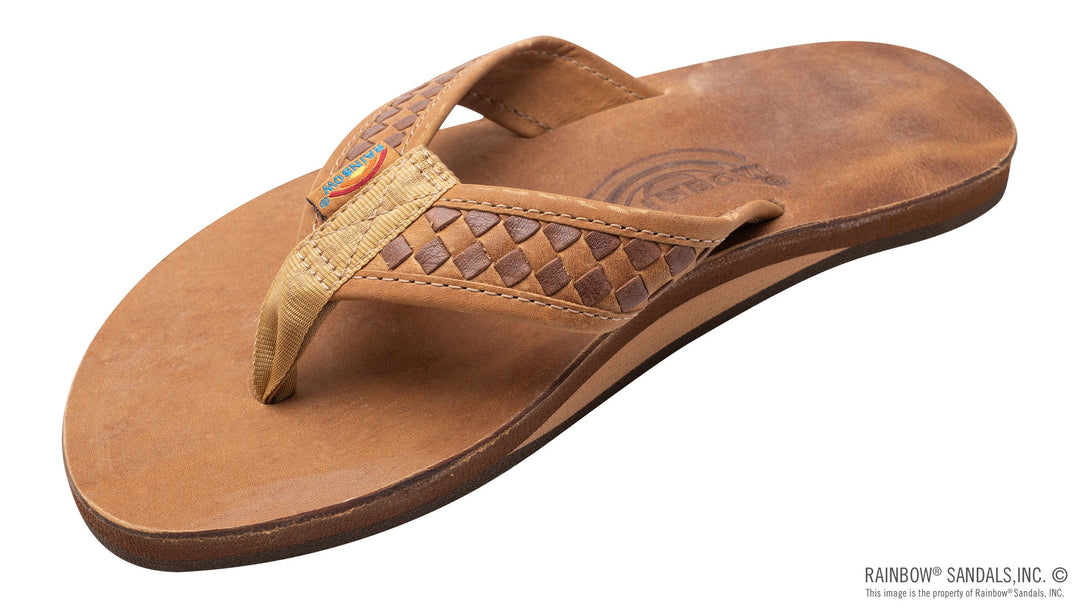 Rainbow Sandals Men's Luxury Leather Collection - The Bentley – Double Layer Arch Hand Woven Strap - Nogales Wood