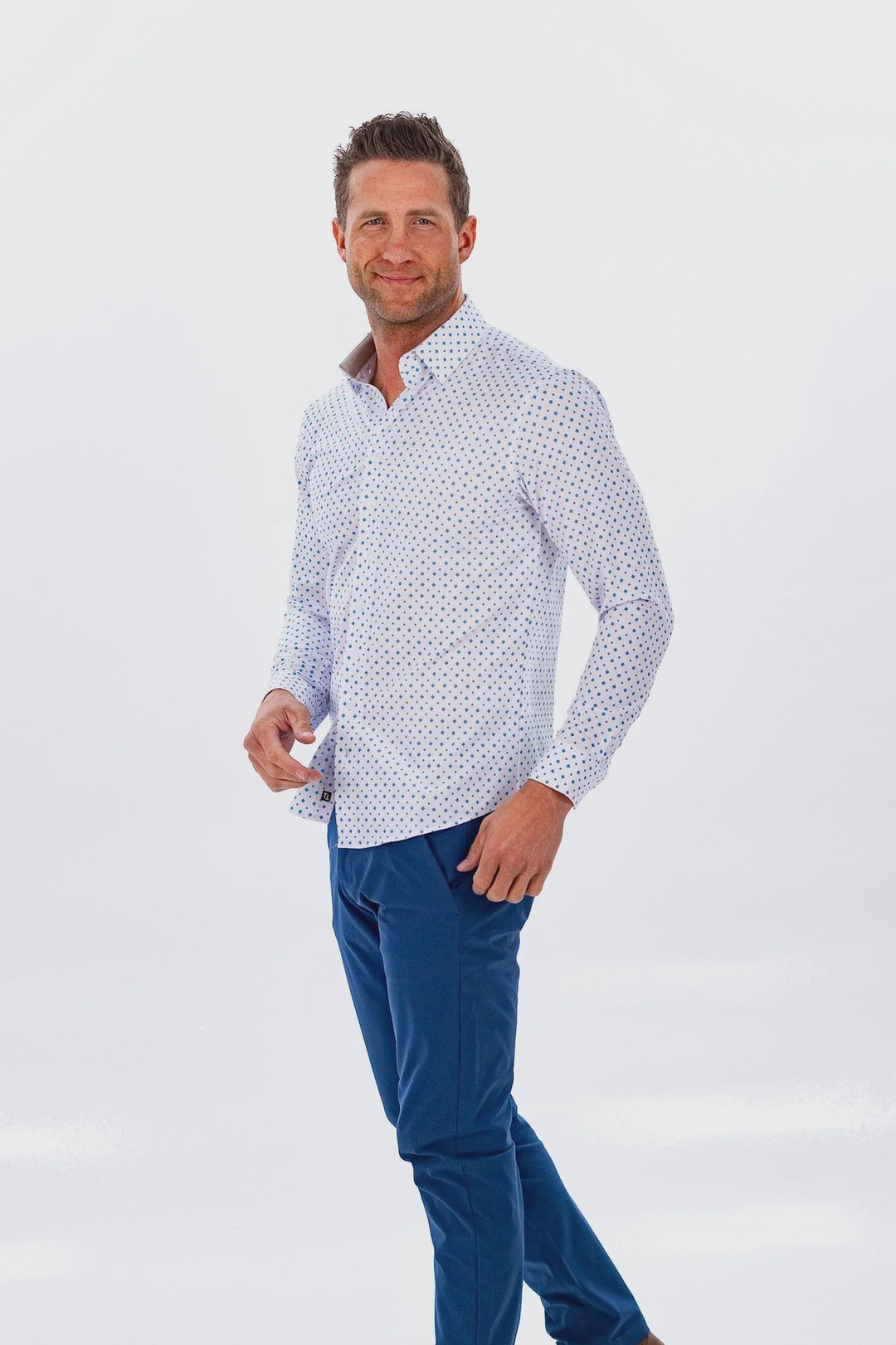 Tough Apparel Hustle Sport Shirt Slim Fit Long Sleeve - White Cobalt Diamond