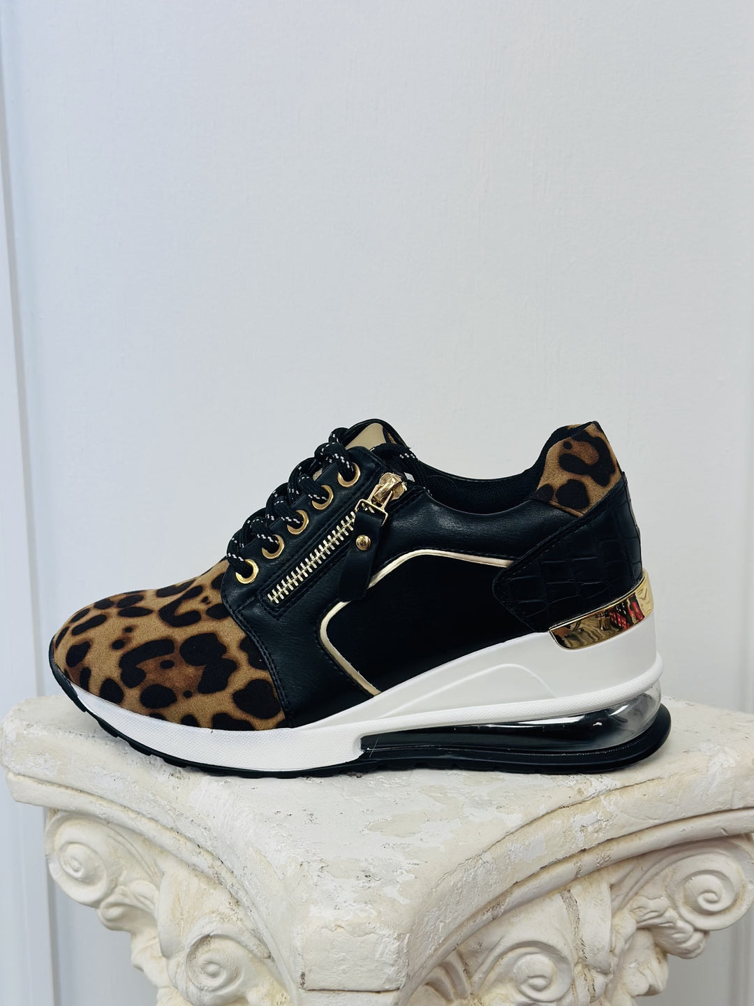 Ninety Union Ultra Black Leopard Heeled Sneaker