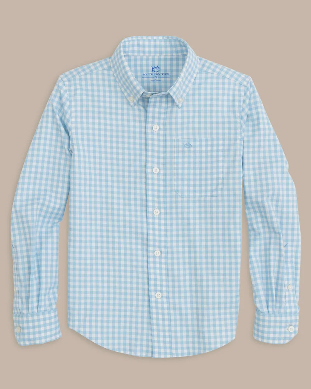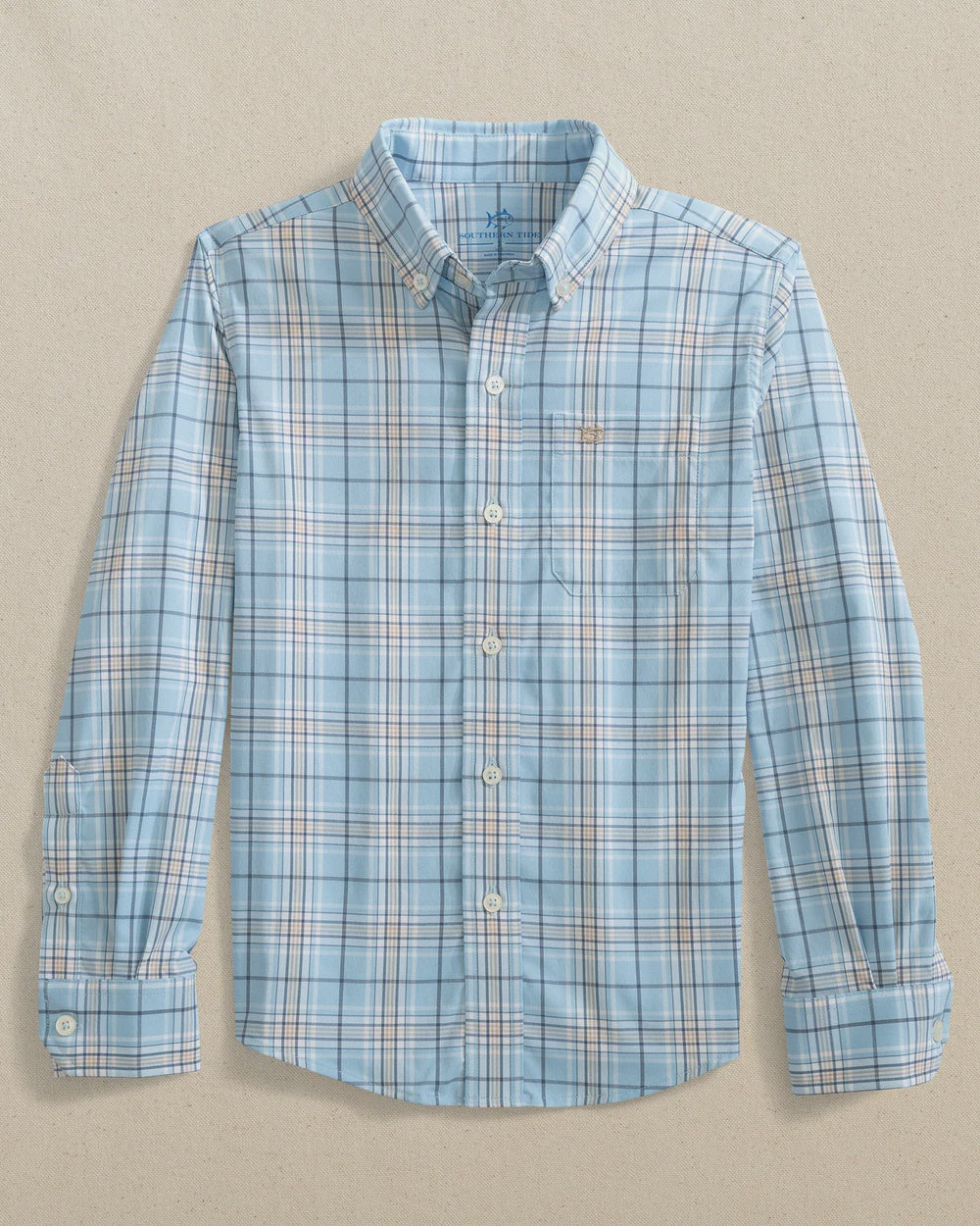 Southern Tide Cerulean Youth Boys Intercoastal River Point Plaid Sport Shirt