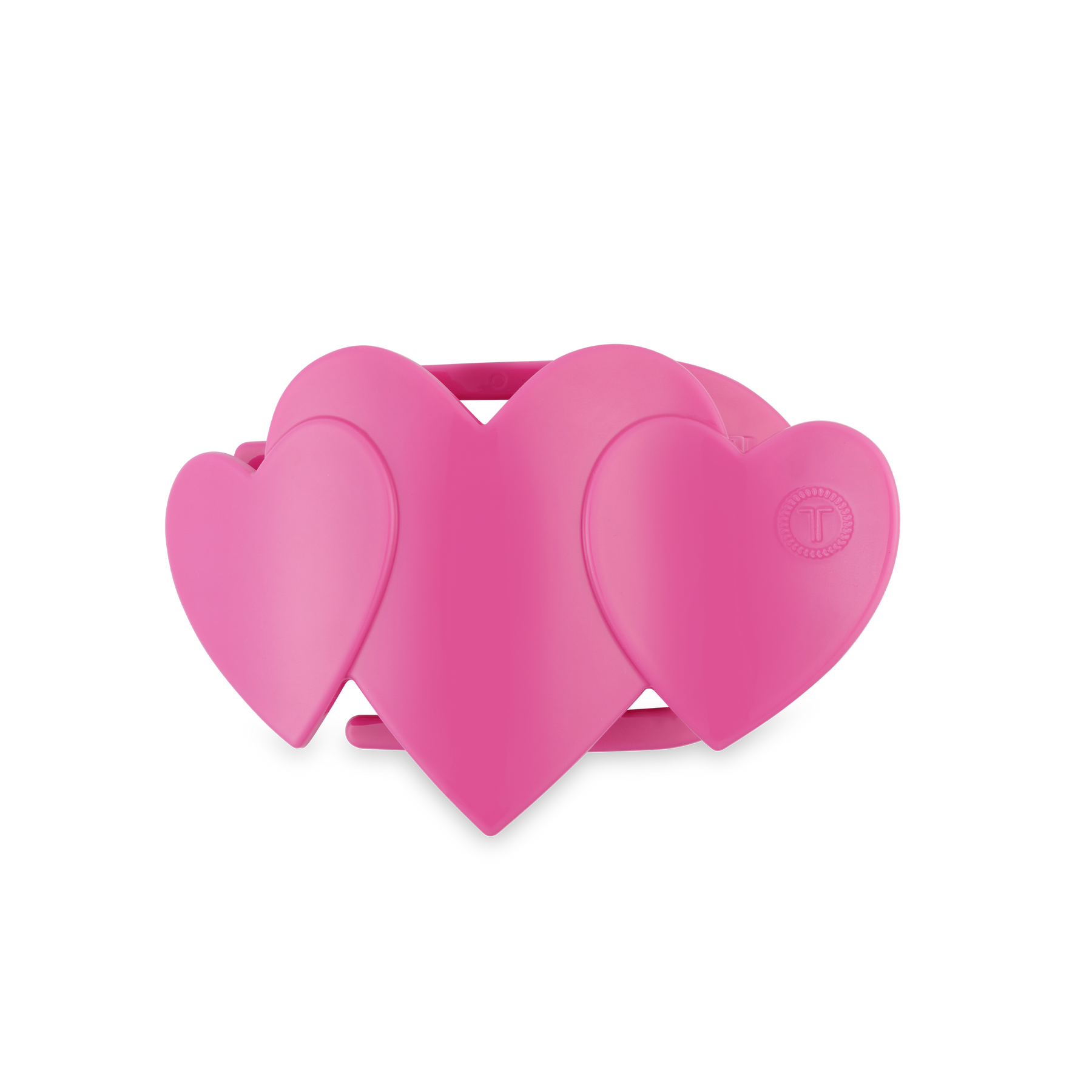 Lay flat and relax with the new TELETIES Pink Heart to Heart Small Flat Hair Clip. This hair clip is designed to allow you to lay back flat, do yoga, or sit comfortably in a seat with a headrest, and it is made with the same material that is nearly unbreakable.
