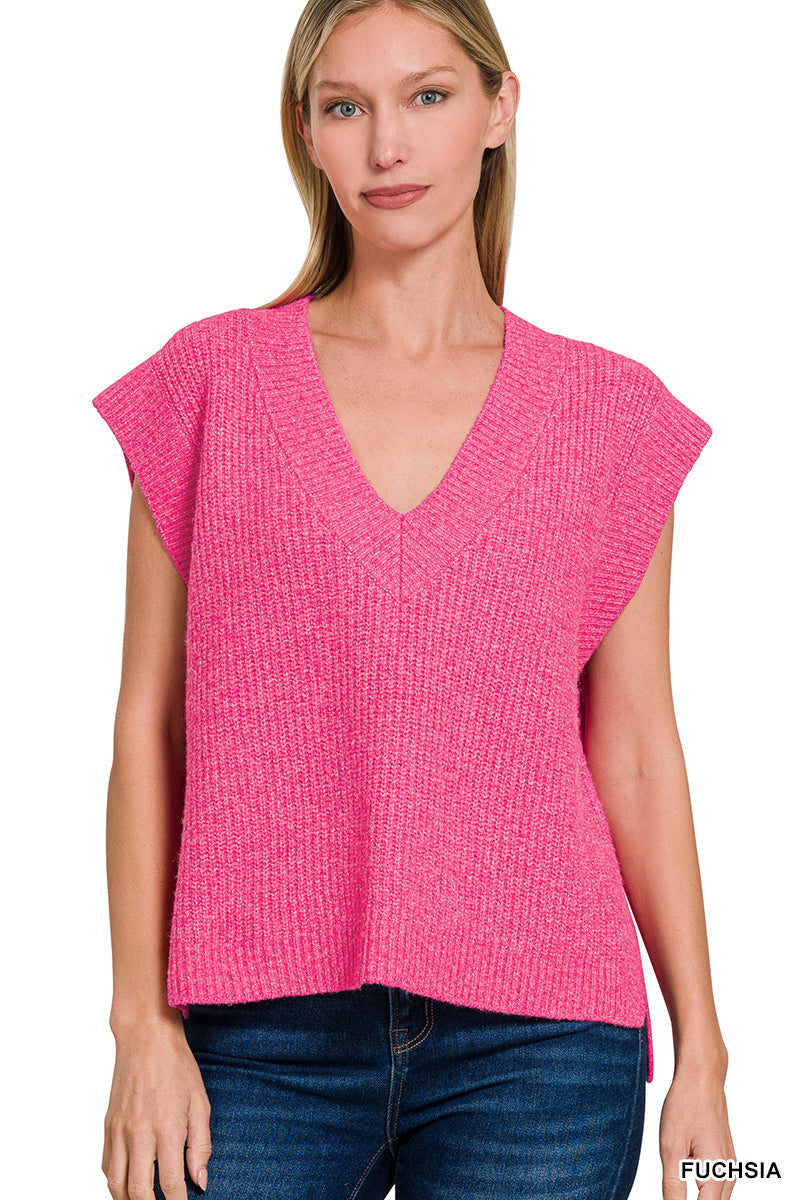 Zenana Oversize Sweater Vest With Side Slit- Fuchsia