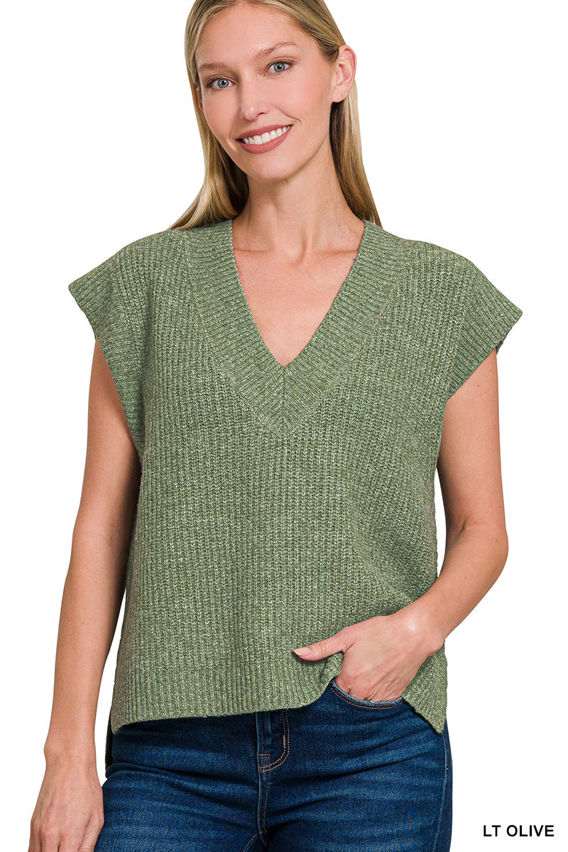 Zenana Oversize Sweater Vest With Side Slit- Olive