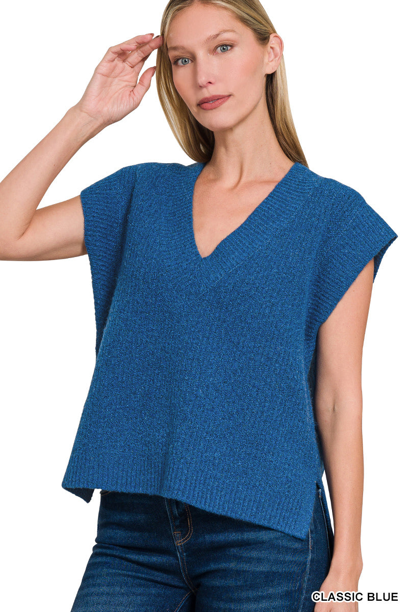 Zenana Oversize Sweater Vest With Side Slit- Classic Blue