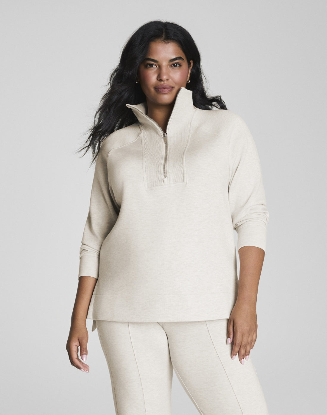 Our SPANX AirEssentials® Brushed Half Zip Tunic is made from our signature spacer fabric that’s light-as-air with a peachy-soft brushed interior for next-level comfort. With a relaxed fit, half-zip neckline, and tunic-length hem, it's an easy loungewear layer with full coverage in the rear (perfect for wearing with leggings). Versatile enough to wear for travel, on the way to the gym or as a cozy outfit topper for errands or downtime, this longer-length half zip will take you anywhere and everywhere.