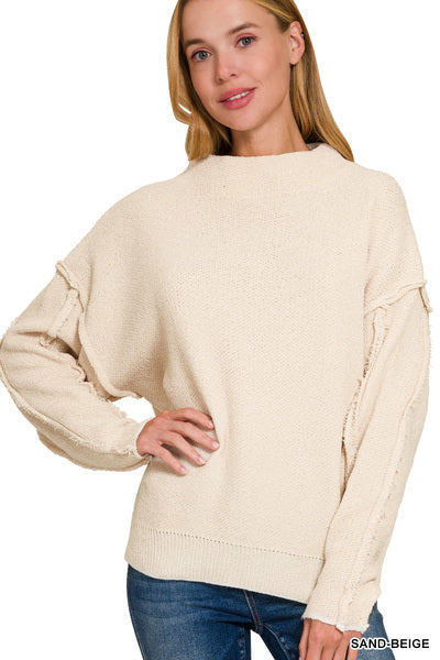 Zenana Sand Beige Mock Neck Chenille Sweater