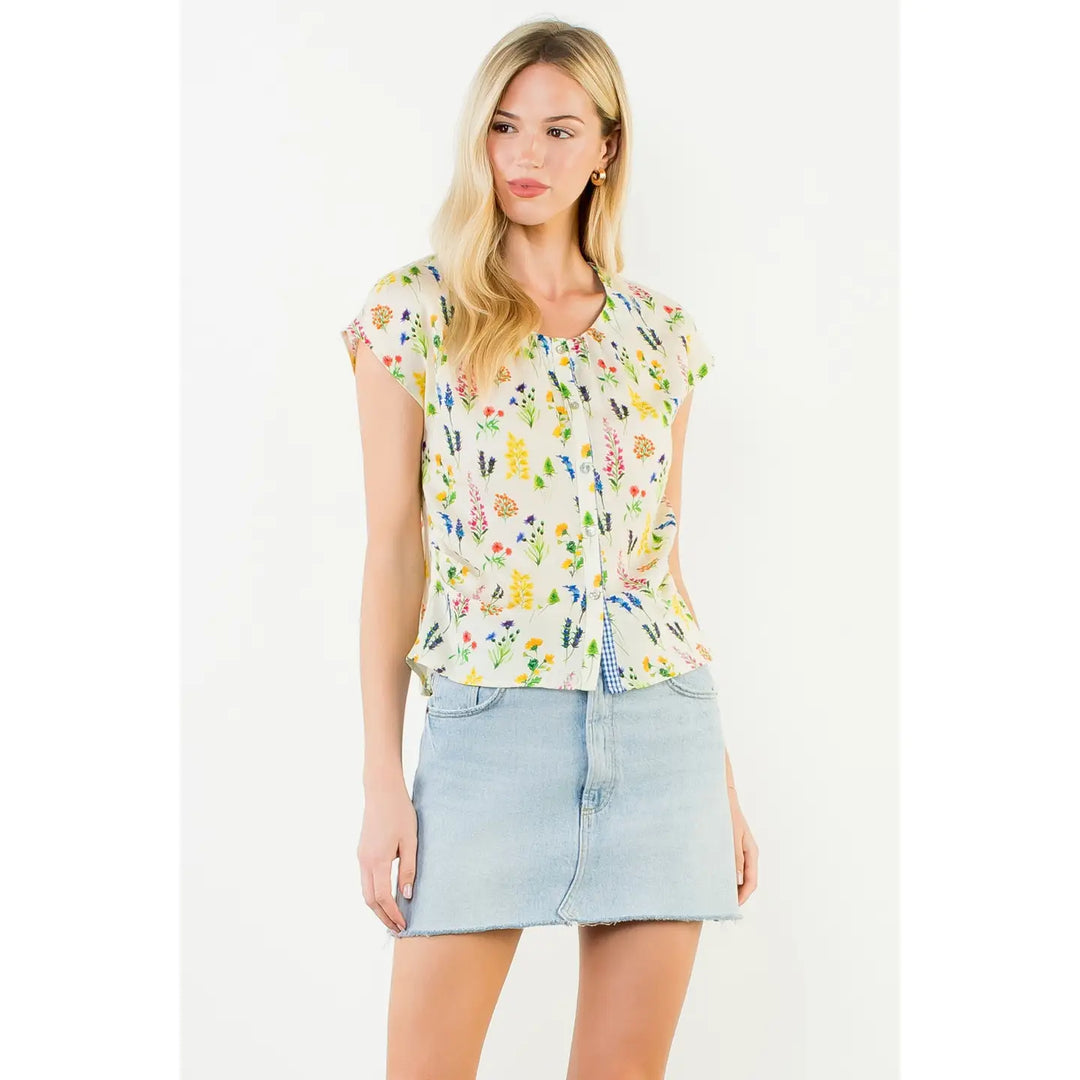 Vilagallo Rojo Rosa Geometric Button Up Top