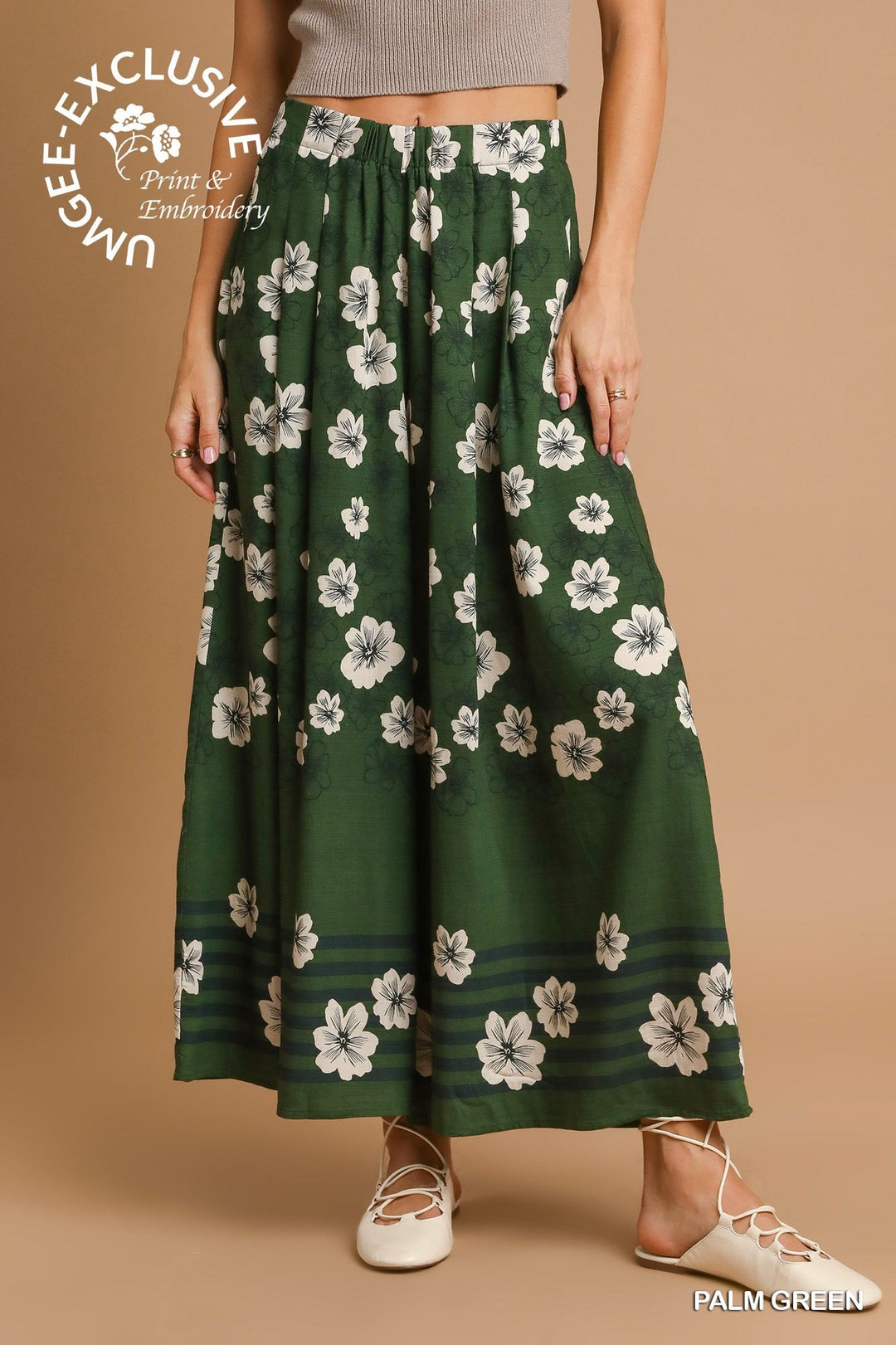 Umgee Green Mix Boarder Print Midi Dress with 3/4 Sleeves