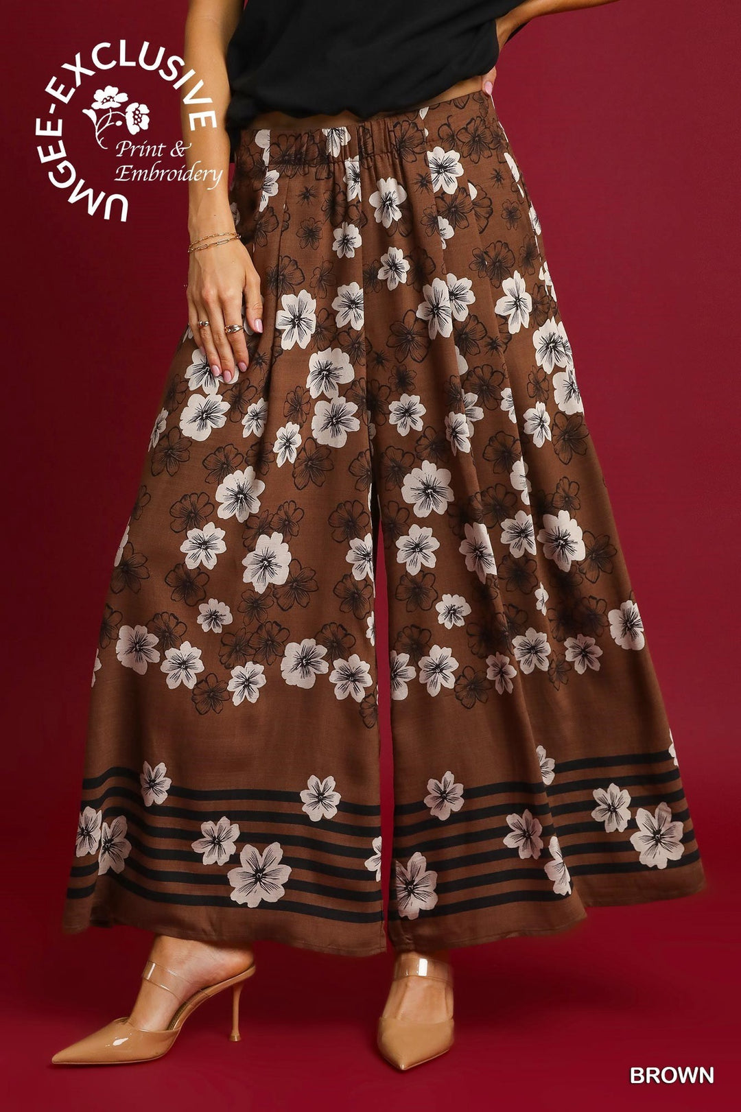 Umgee Brown Mix Mix Floral Ruffle Midi Dress