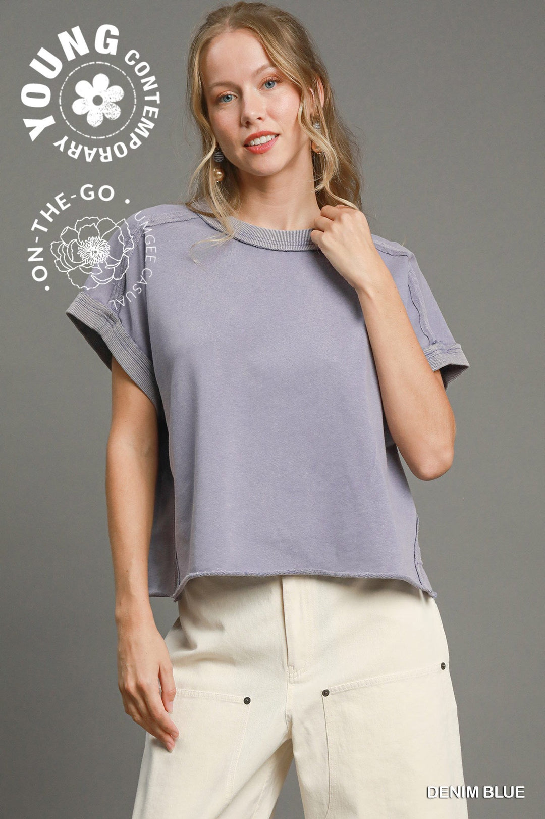 Umgee Denim Blue Mineral Washed Dolman Sleeved Crop Top
