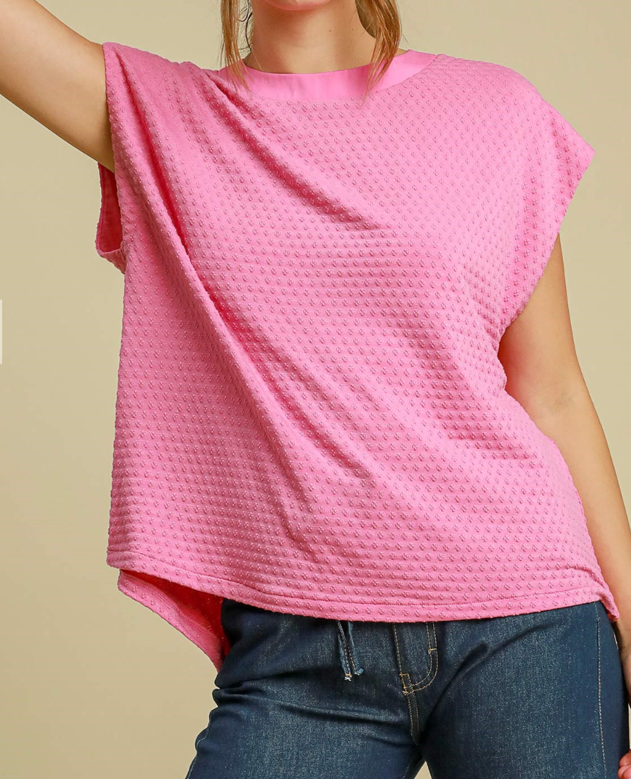 Umgee Bubble Pink Jersey Jacquard Dolman Top