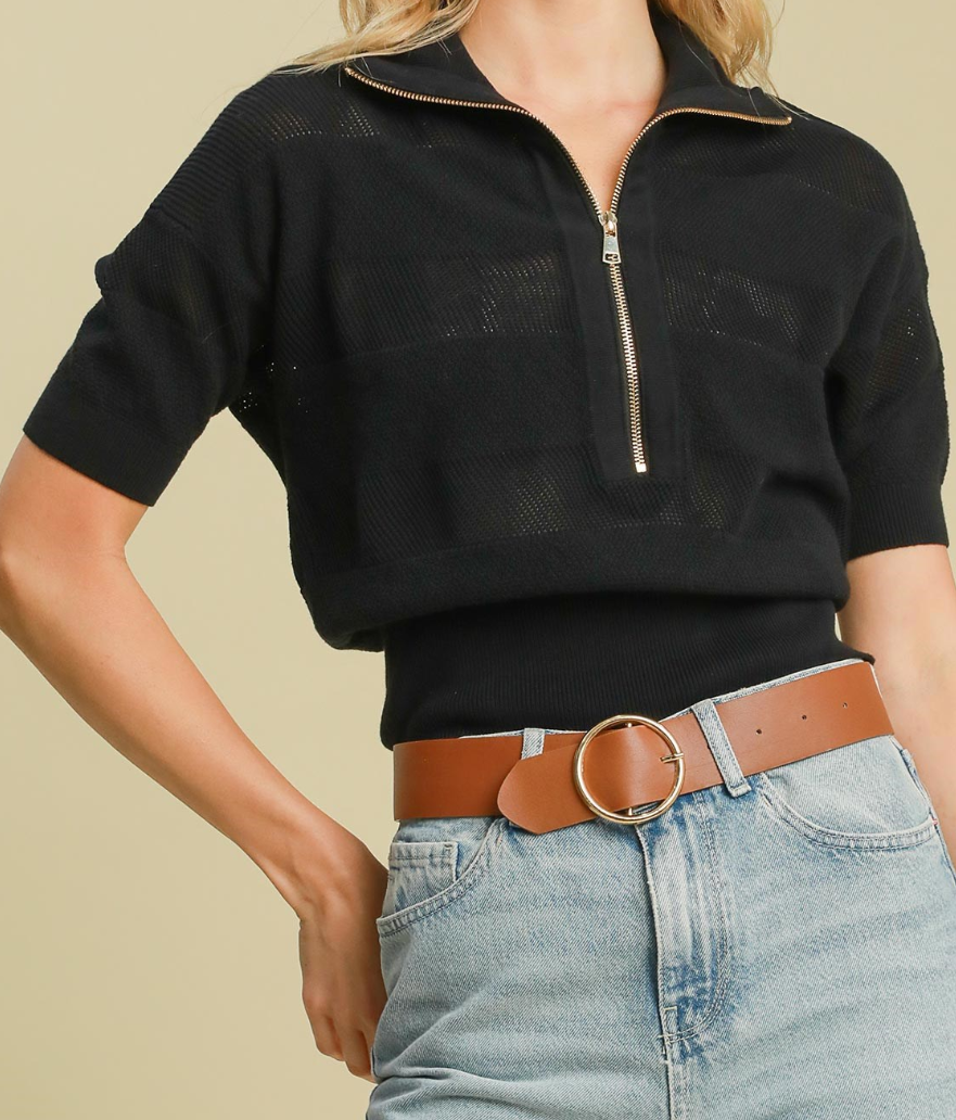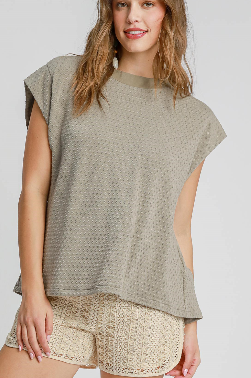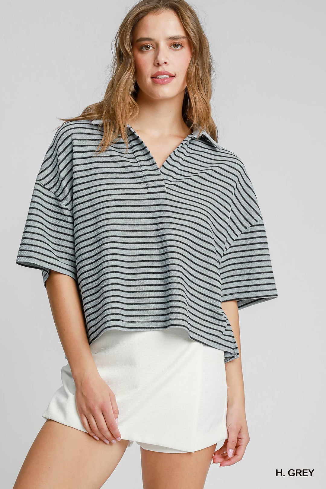 Umgee Taupe Striped Half Sleeve Sweater Top