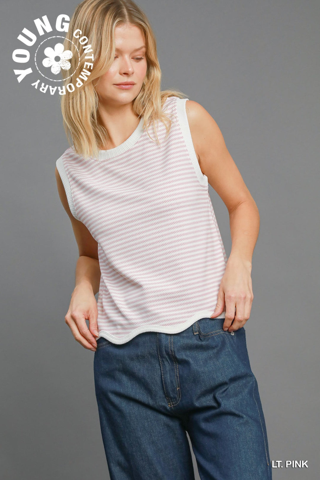 Umgee Light Pink Textured Knit Top with Scalloped Hemline