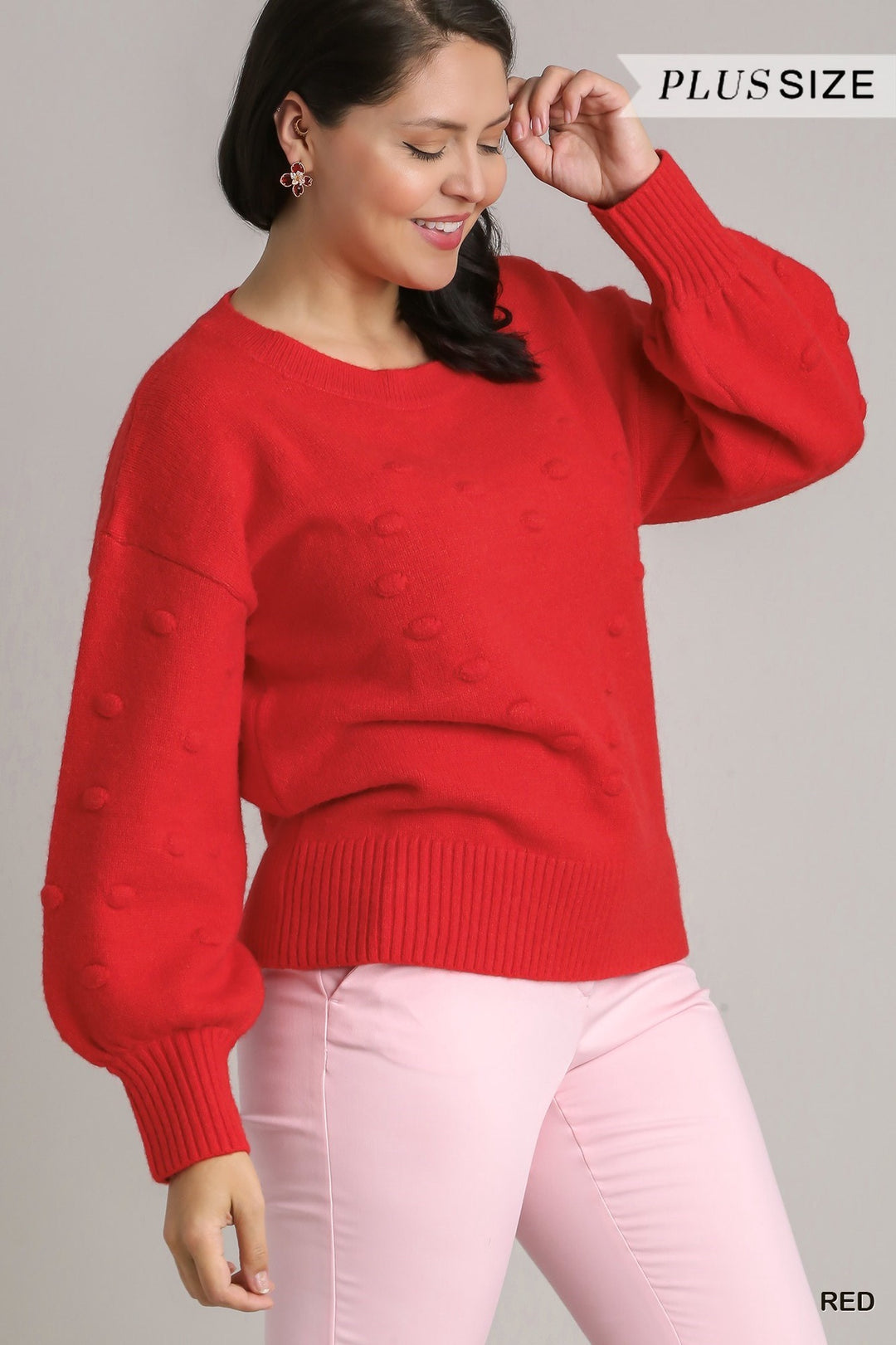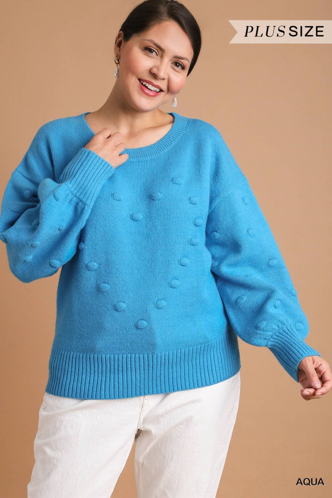 Umgee Aqua Pom Pom Knit Pullover Sweater