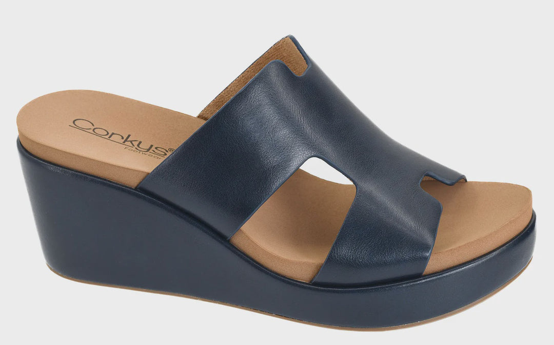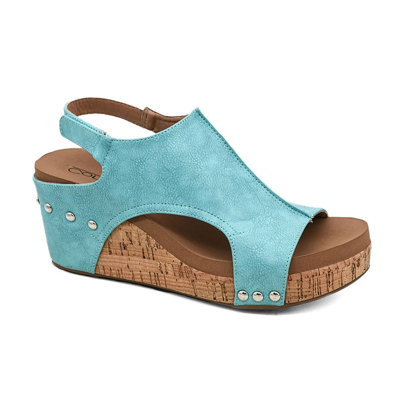 Corkys Tie The Knot Wedge Sandal - Blue Natural Stripe