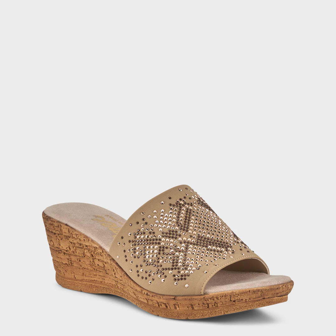 Onex Bianca-C Straw Slide on Wedge- Gold