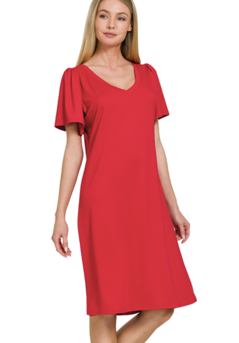 Zenana Brushed Microfiber Ruffle Sleeve Dress