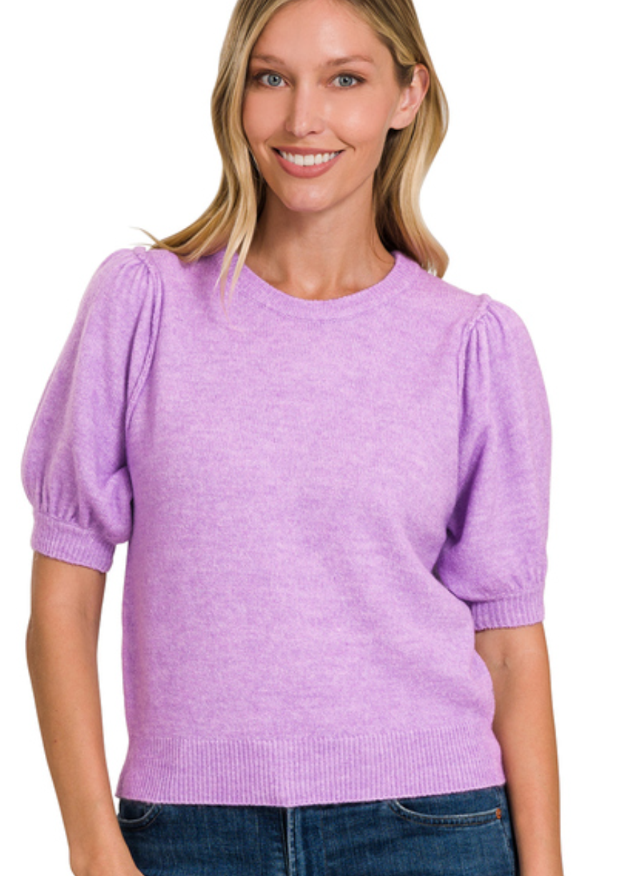 Zenana Heathered Lavender Melange Puff Sleeve Sweater
