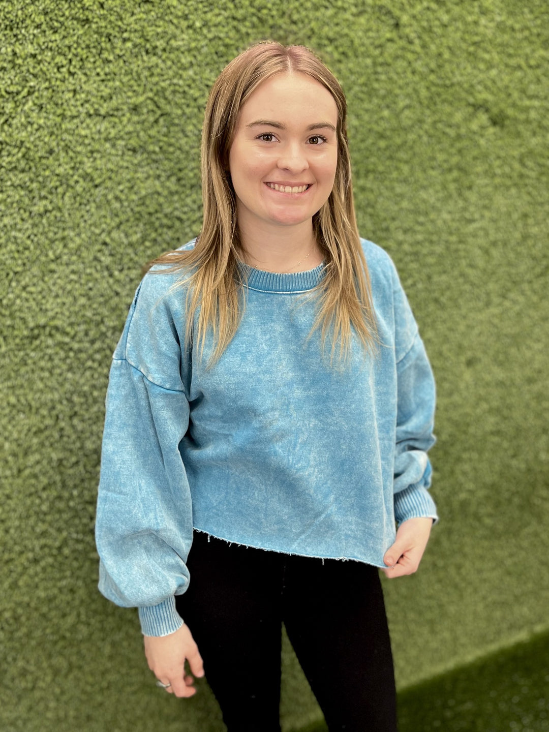 Zenana Deep Sky Blue Raw Hem Sweatshirt